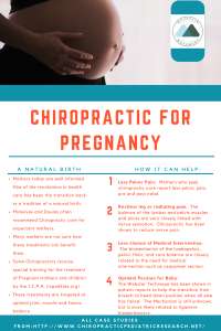 Many mothers have reported back to us that in their first birth they did not recieve chiropractic care, but in their second after a monthly visit they noticed a faster, less painful birth process and less back labor.Again this is not hard facts but I can count at least 10 times mothers reported this back without any prompting.